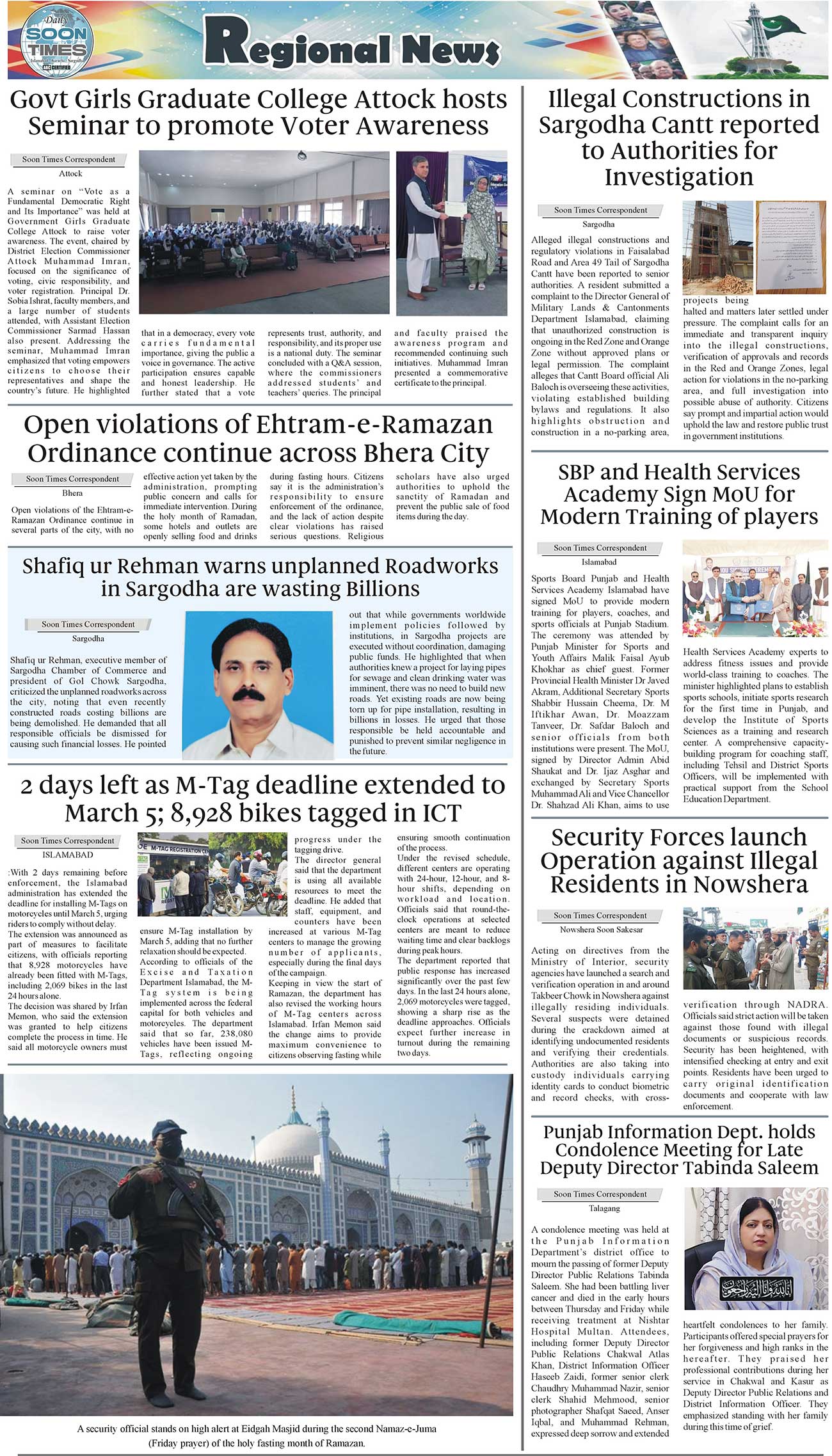 Daily Soon Times Page: 3 February 28, 2026 Daily Soon Times today's ePaper leading English national newspaper from Islamabad, Sargodha, Karachi, Pakistan << First << 3 >> Last >> Page 1Page 2Page 3Page 4 × Daily Soon Times 1234 1234 3