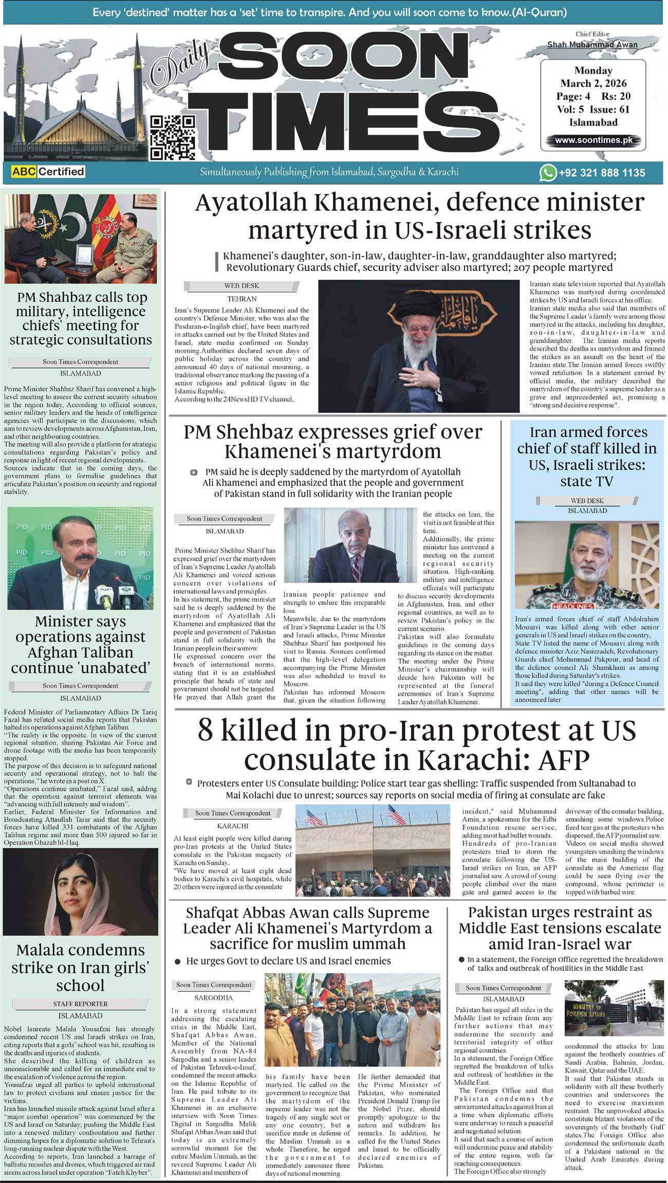 Daily Soon Times March 02, 2026 Daily Soon Times today's ePaper leading English national newspaper from Islamabad, Sargodha, Karachi, Pakistan << First << 1 >> Last >> Page 1Page 2Page 3Page 4 × Daily Soon Times 1.23k4 1.23k4 1.