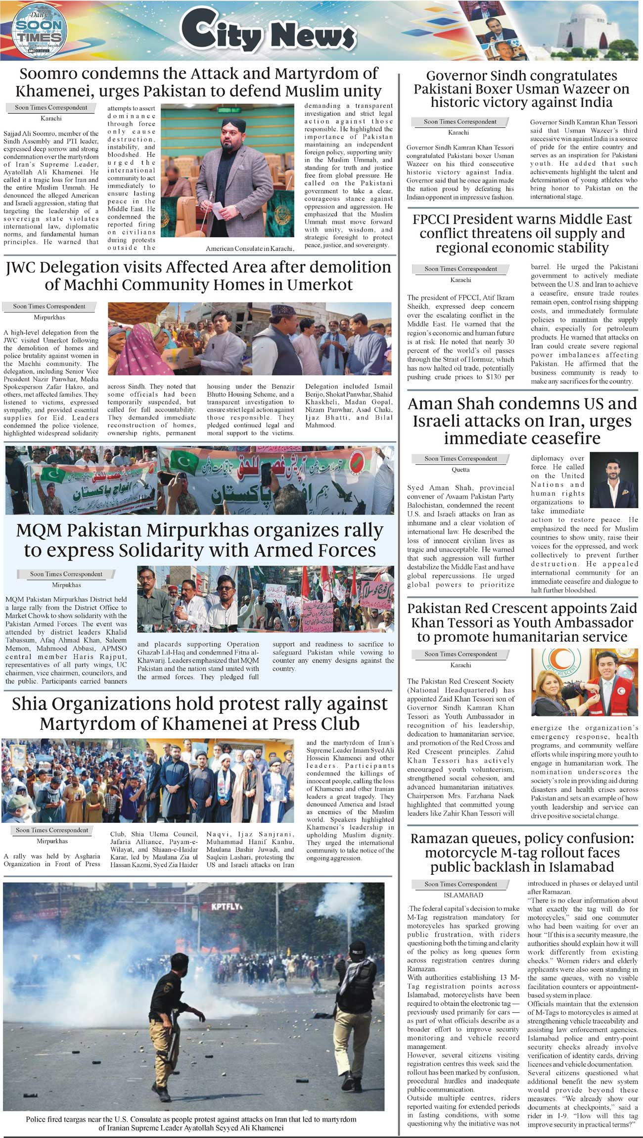 Daily Soon Times Page: 3 March 02, 2026 Daily Soon Times today's ePaper leading English national newspaper from Islamabad, Sargodha, Karachi, Pakistan << First << 3 >> Last >> Page 1Page 2Page 3Page 4 × Daily Soon Times 1.23k4 1.23k4 3k