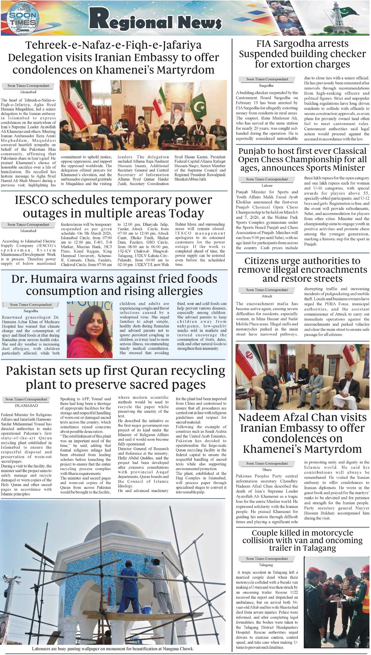 Daily Soon Times Page: 3 March 05, 2026 Daily Soon Times today's ePaper leading English national newspaper from Islamabad, Sargodha, Karachi, Pakistan << First << 3 >> Last >> Page 1Page 2Page 3Page 4 × Daily Soon Times 1.2.34 1.2.34 3