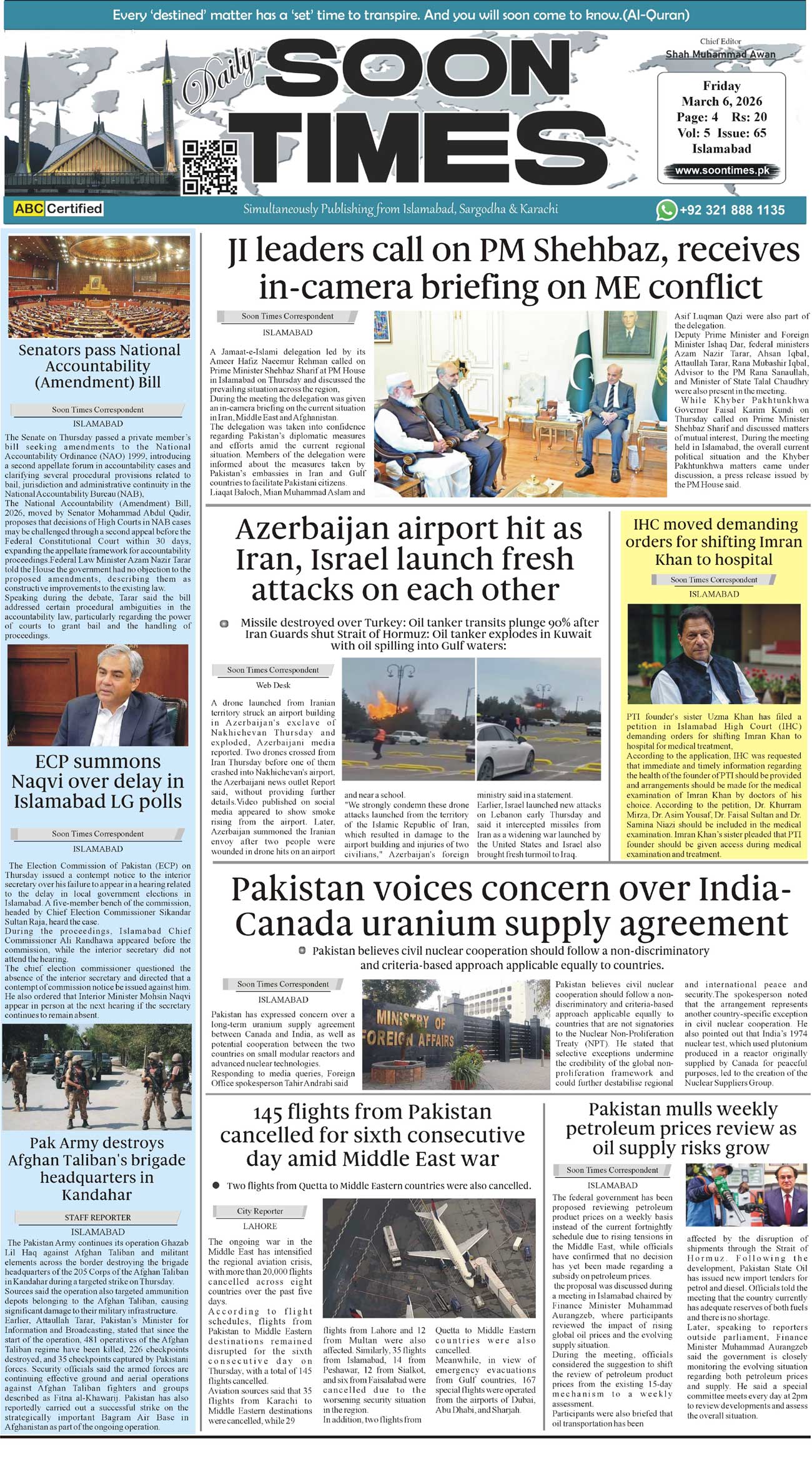 Daily Soon Times March 06, 2026 Daily Soon Times today's ePaper leading English national newspaper from Islamabad, Sargodha, Karachi, Pakistan << First << 1 >> Last >> Page 1Page 2Page 3Page 4 × Daily Soon Times 1.234 1.234 1.