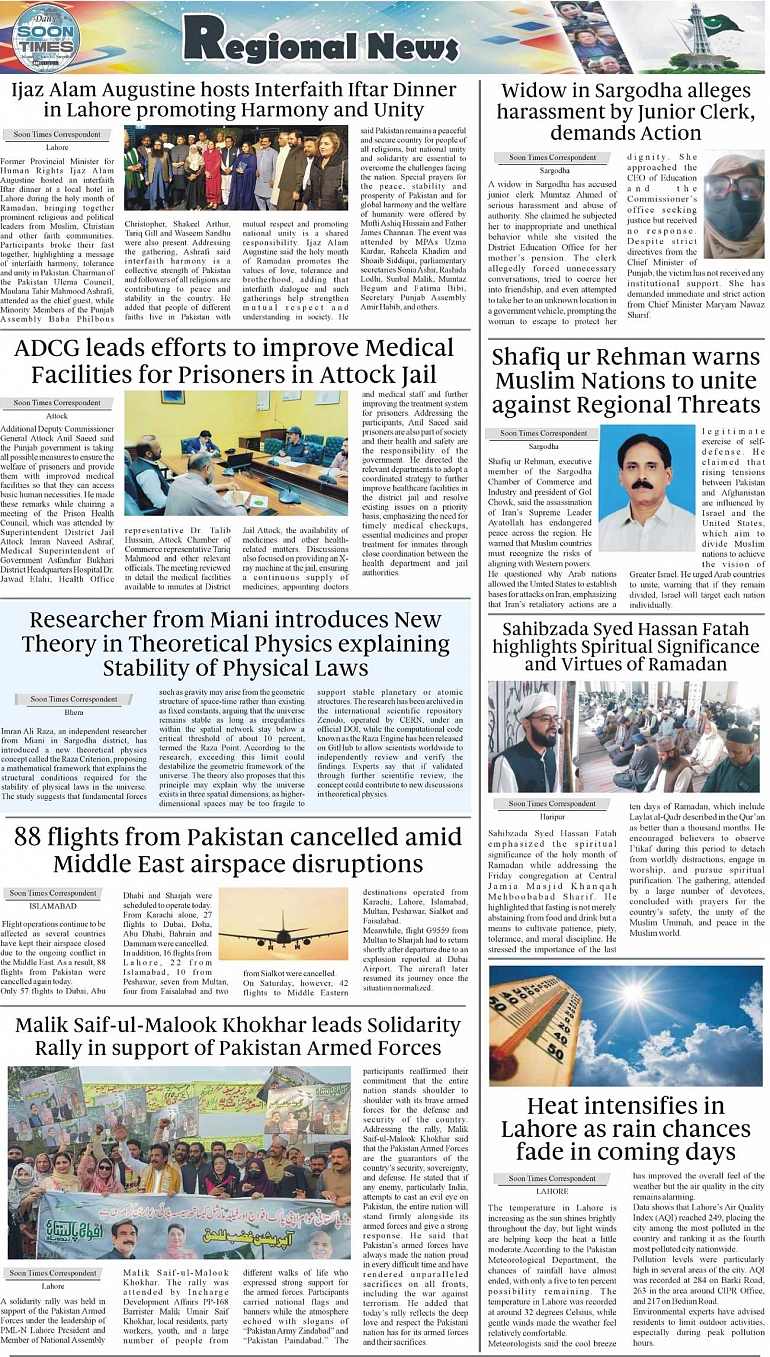 Daily Soon Times Page: 3 March 09, 2026 Daily Soon Times today's ePaper leading English national newspaper from Islamabad, Sargodha, Karachi, Pakistan << First << 3 >> Last >> Page 1Page 2Page 3Page 4 × Daily Soon Times 1234 1234 3