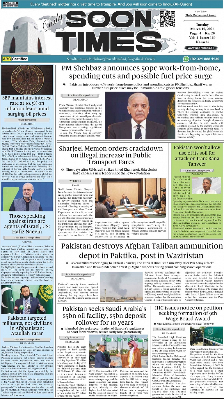 Daily Soon Times March 10, 2026 Daily Soon Times today's ePaper leading English national newspaper from Islamabad, Sargodha, Karachi, Pakistan << First << 1 >> Last >> Page 1Page 2Page 3Page 4 × Daily Soon Times 1k23k4 1k23k4 1k