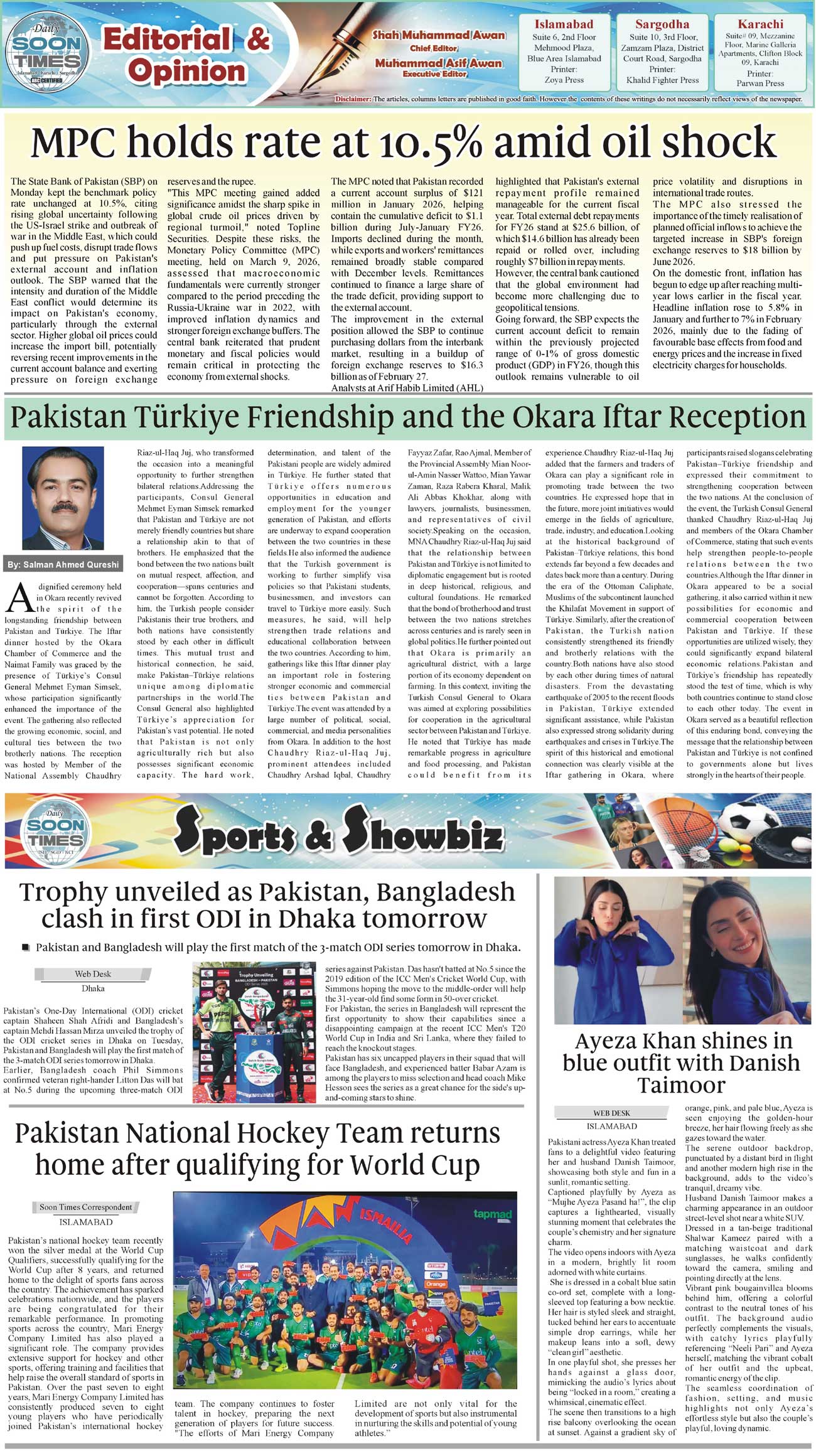 Daily Soon Times Page: 2 March 11, 2026 Daily Soon Times today's ePaper leading English national newspaper from Islamabad, Sargodha, Karachi, Pakistan << First << 2 >> Last >> Page 1Page 2Page 3Page 4 × Daily Soon Times 1234 1234 2