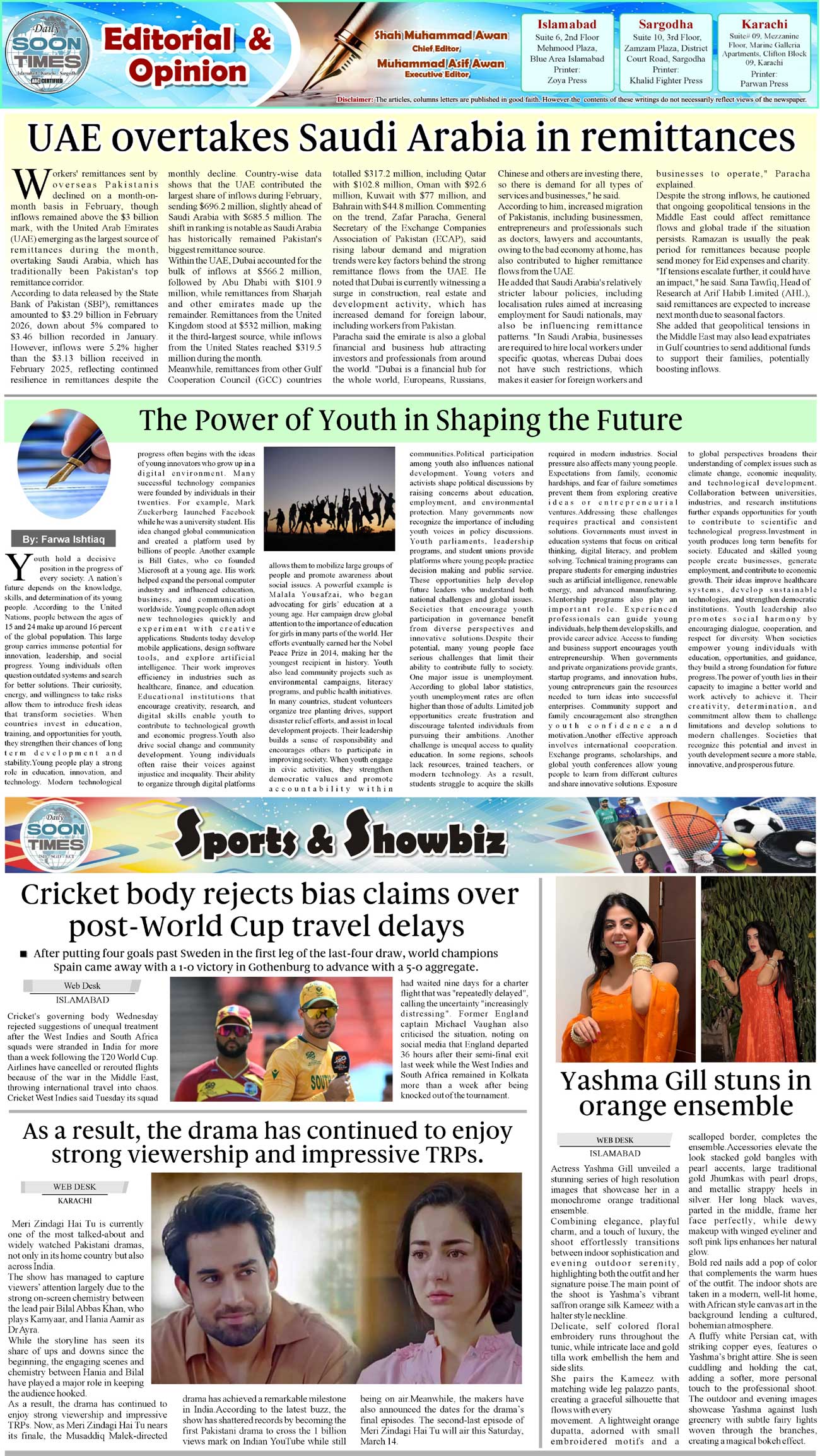 Daily Soon Times Page: 2 March 12, 2026 Daily Soon Times today's ePaper leading English national newspaper from Islamabad, Sargodha, Karachi, Pakistan << First << 2 >> Last >> Page 1Page 2Page 3Page 4 × Daily Soon Times 1.234 1.234 2
