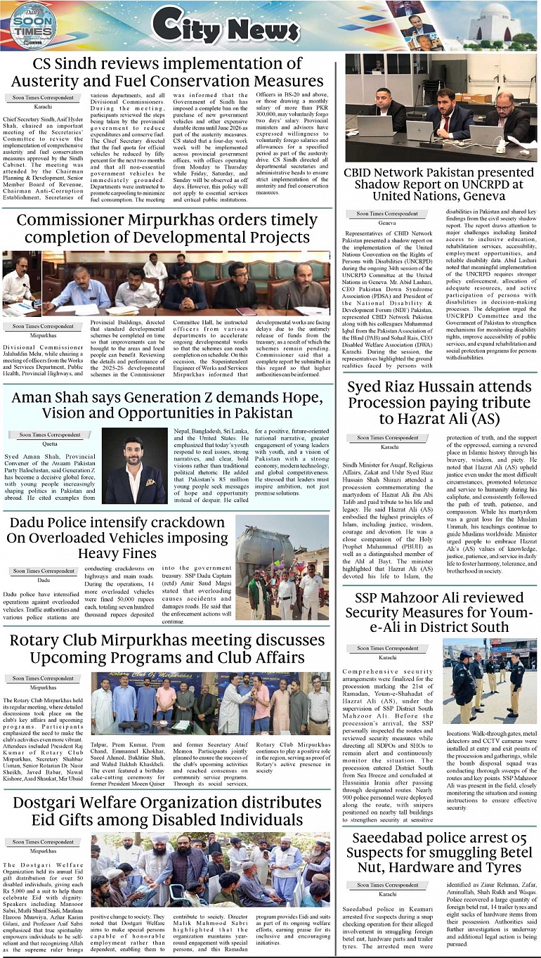 Daily Soon Times Page: 3 March 12, 2026 Daily Soon Times today's ePaper leading English national newspaper from Islamabad, Sargodha, Karachi, Pakistan << First << 3 >> Last >> Page 1Page 2Page 3Page 4 × Daily Soon Times 1k23k4 1k23k4 3k
