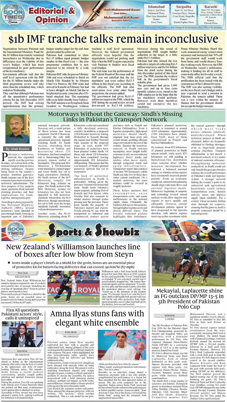 Daily Soon Times Page: 2 March 13, 2026 Daily Soon Times today's ePaper leading English national newspaper from Islamabad, Sargodha, Karachi, Pakistan << First << 2 >> Last >> Page 1Page 2Page 3Page 4 × Daily Soon Times 1234 1234 2