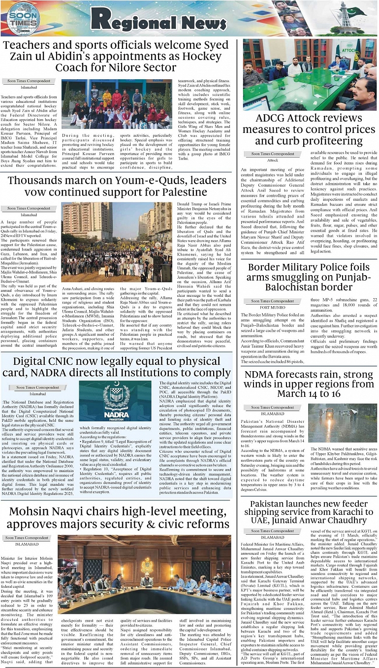 Daily Soon Times Page: 3 March 14, 2026 Daily Soon Times today's ePaper leading English national newspaper from Islamabad, Sargodha, Karachi, Pakistan << First << 3 >> Last >> Page 1Page 2Page 3Page 4 × Daily Soon Times 1234 1234 3