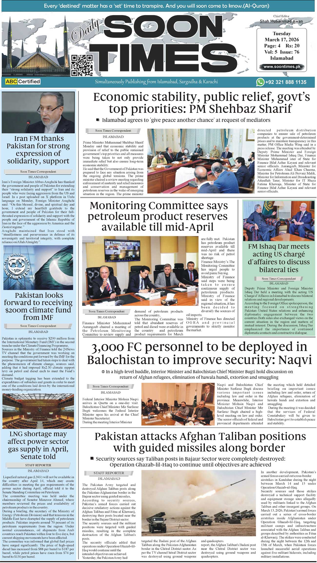 Daily Soon Times March 17, 2026 Daily Soon Times today's ePaper leading English national newspaper from Islamabad, Sargodha, Karachi, Pakistan << First << 1 >> Last >> Page 1Page 2Page 3Page 4 × Daily Soon Times 1.234 1.234 1.