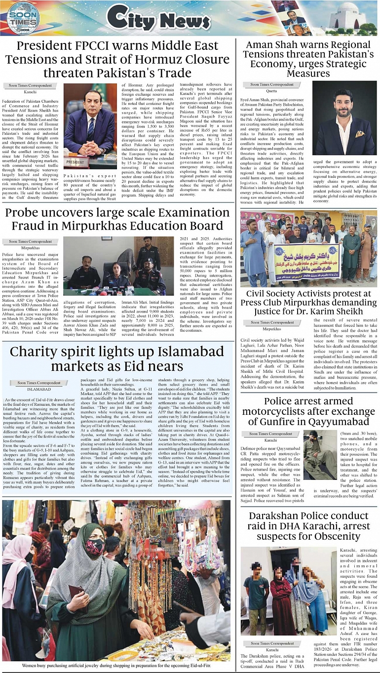 Daily Soon Times Page: 3 March 17, 2026 Daily Soon Times today's ePaper leading English national newspaper from Islamabad, Sargodha, Karachi, Pakistan << First << 3 >> Last >> Page 1Page 2Page 3Page 4 × Daily Soon Times 1k23k4 1k23k4 3k