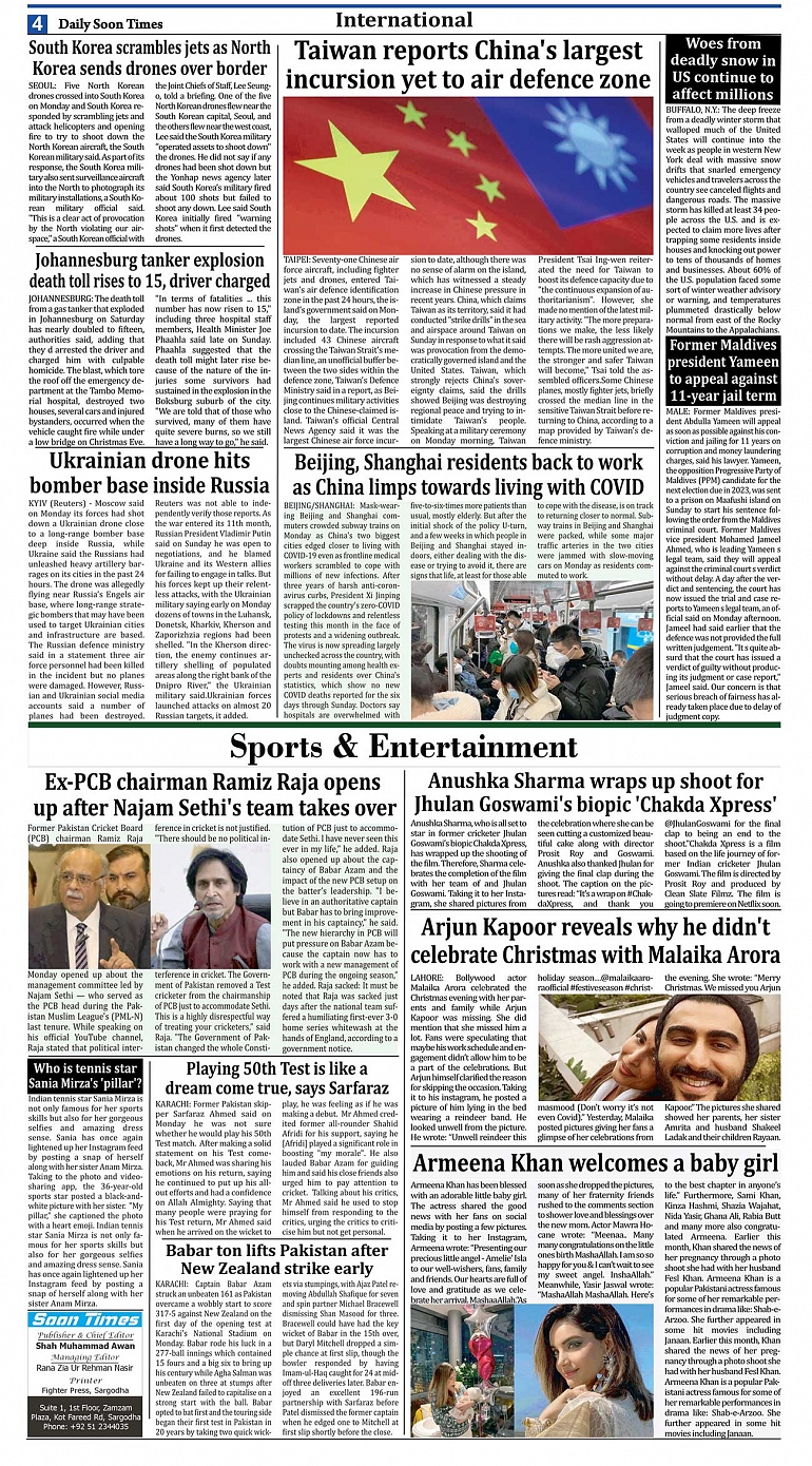 Daily Soon Times Page: 4 December 27, 2022 Daily Soon Times Today's Newspaper << First << 4 >> Last >> Page 1Page 2Page 3Page 4 × Daily Soon Times 1234 Full PDF 1234 4