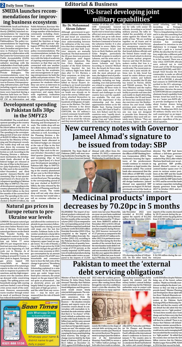 Daily Soon Times Page: 2 December 30, 2022 Today's ePaper Daily Soon Times Islamabad Pakistan << First << 2 >> Last >> Page 1Page 2Page 3Page 4 × Daily Soon Times 1234 Full PDF 1234 2