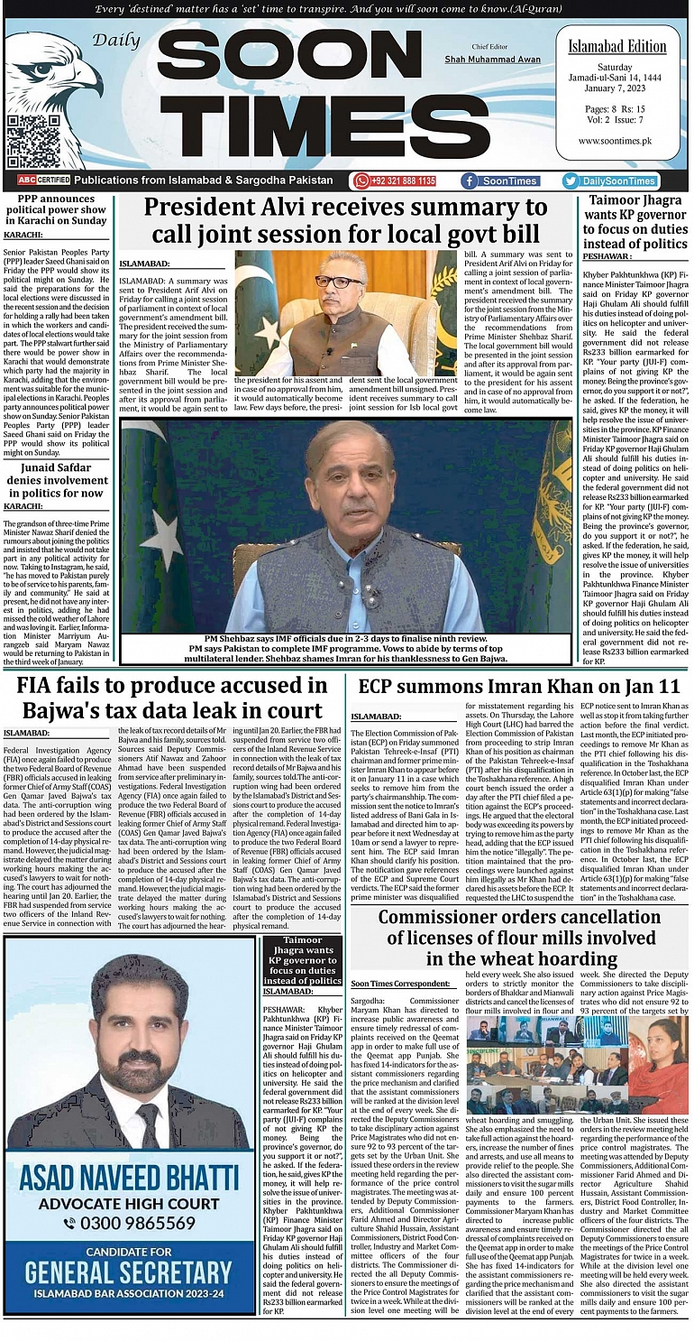 Daily Soon Times January 07, 2023 Today's ePaper Islamabad Edition << First << 1 >> Last >> Page 1Page 2Page 3Page 4Page 5Page 6Page 7Page 8 × Daily Soon Times 12345678 Full PDF 12345678 1