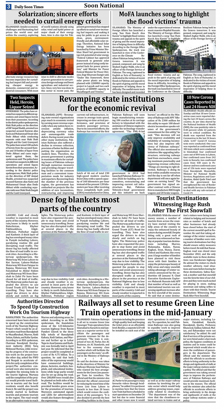 Daily Soon Times Page: 3 January 09, 2023 Today's ePaper Islamabad Edition << First << 3 >> Last >> Page 1Page 2Page 3Page 4Page 5Page 6Page 7Page 8 × Daily Soon Times 12345678ISD Full PDF 12345678ISD 3