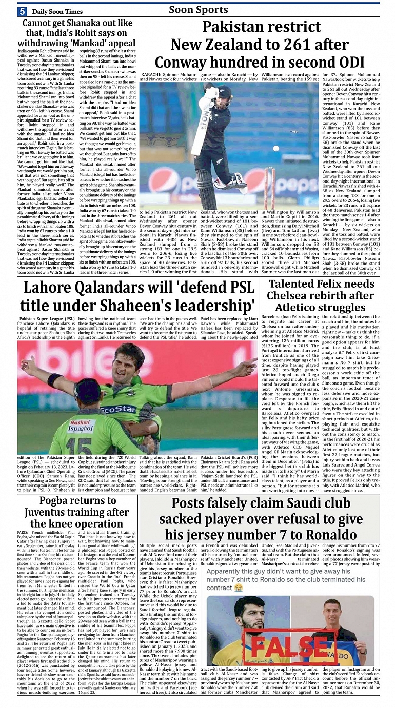 Daily Soon Times Page: 5 January 12, 2023 Today's ePaper Islamabad Edition << First << 5 >> Last >> Page 1Page 2Page 3Page 4Page 5Page 6Page 7Page 8 × Daily Soon Times 12345678 Full PDF 12345678 5