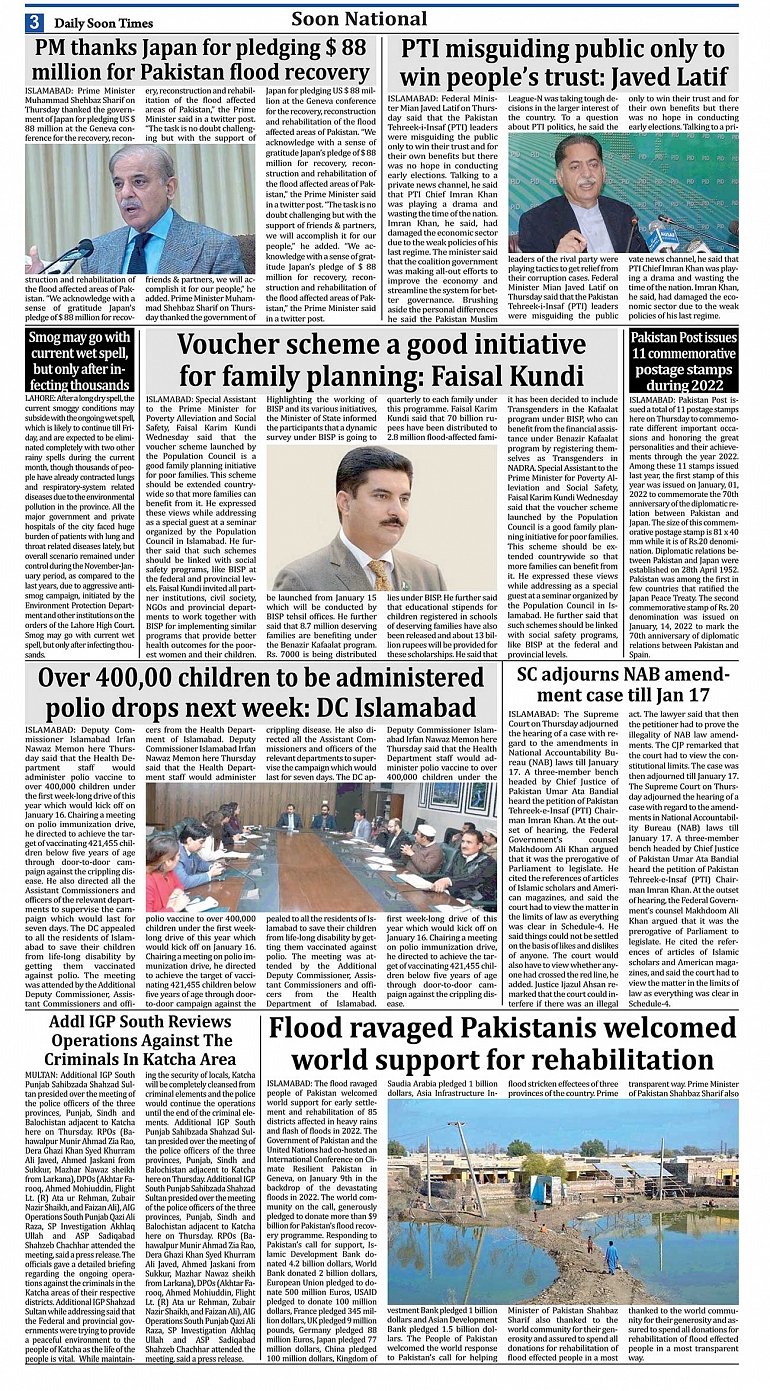 Daily Soon Times Page: 3 January 13, 2023 Today's ePaper Islamabad Edition << First << 3 >> Last >> Page 1Page 2Page 3Page 4Page 5Page 6Page 7Page 8 × Daily Soon Times 12345678 Full PDF 12345678 3