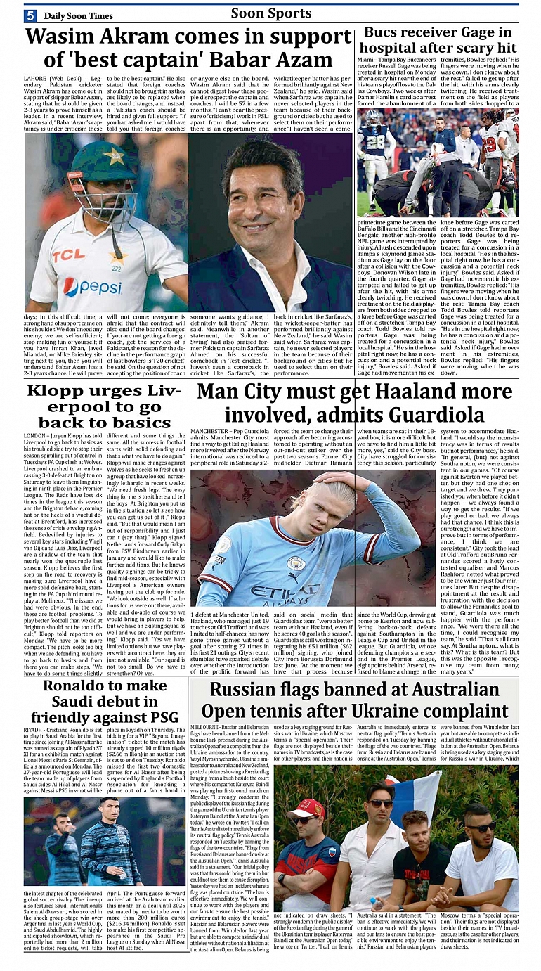 Daily Soon Times Page: 5 January 18, 2023 Today's ePaper Islamabad Edition << First << 5 >> Last >> Page 1Page 2Page 3Page 4Page 5Page 6Page 7Page 8 × Daily Soon Times 12345678 Full PDF 12345678 5