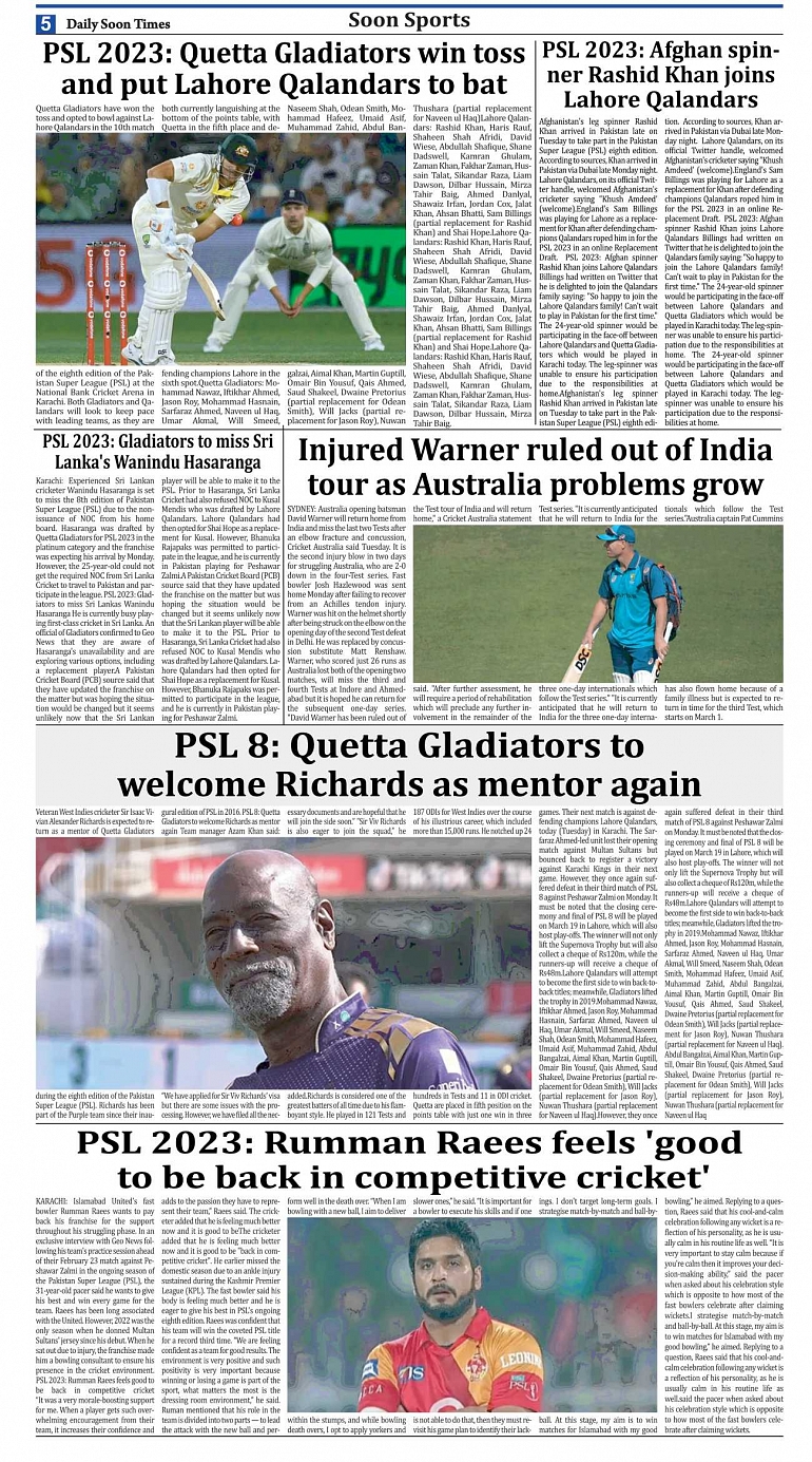 Daily Soon Times Page: 5 February 22, 2023 Today's ePaper Islamabad Edition << First << 5 >> Last >> Page 1Page 2Page 3Page 4Page 5Page 6Page 7Page 8 × Daily Soon Times 12345678 12345678 5