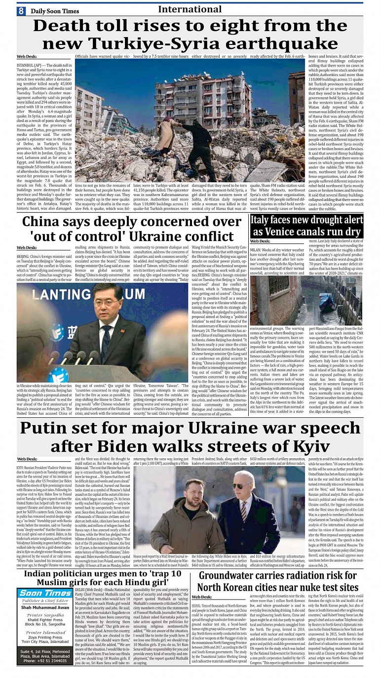 Daily Soon Times Page: 8 February 22, 2023 Today's ePaper Islamabad Edition << First << 8 >> Last >> Page 1Page 2Page 3Page 4Page 5Page 6Page 7Page 8 × Daily Soon Times 12345678 12345678 8