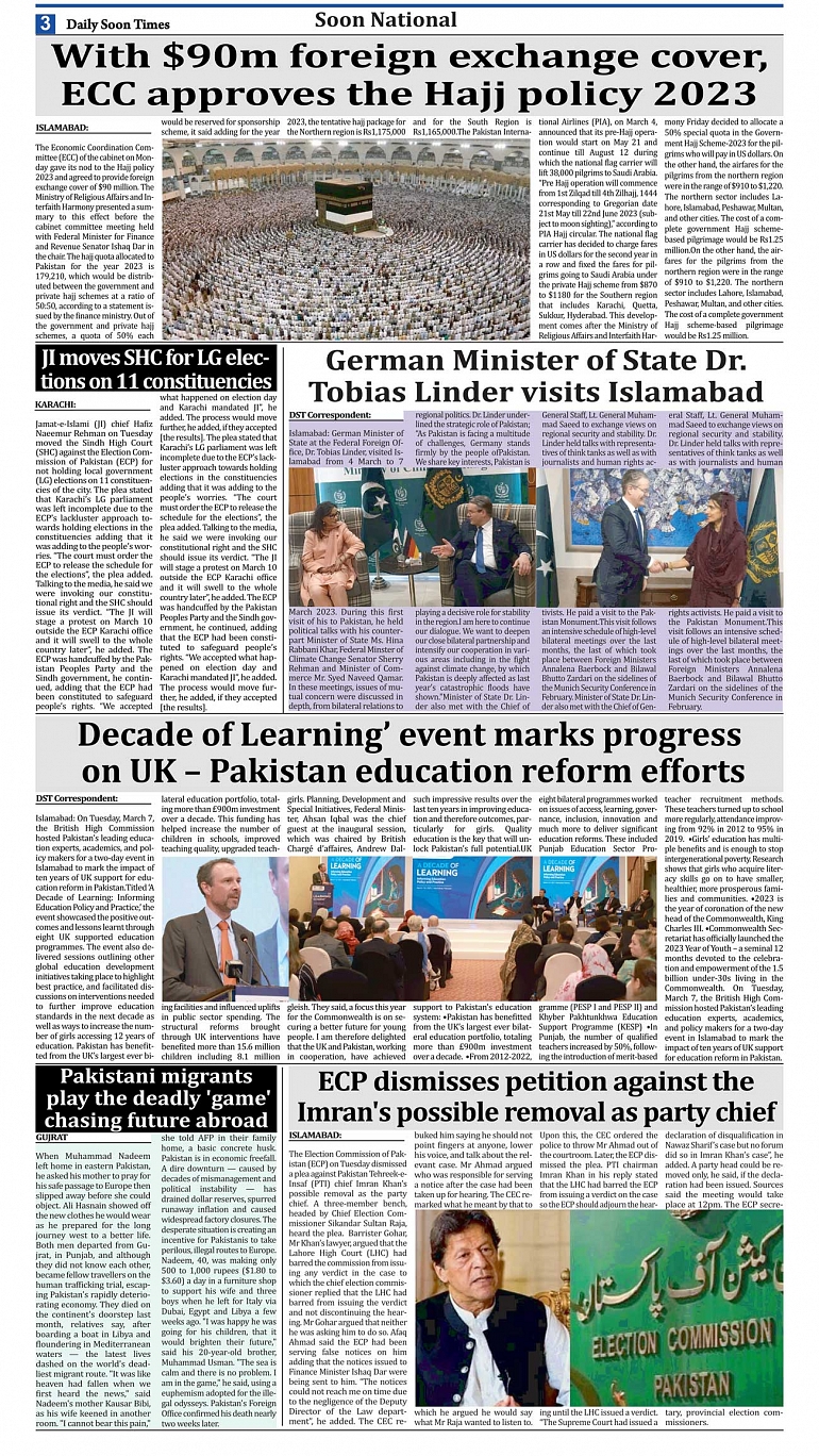 Daily Soon Times Page: 3 March 08, 2023 Today's ePaper Islamabad Edition << First << 3 >> Last >> Page 1Page 2Page 3Page 4Page 5Page 6Page 7Page 8 × Daily Soon Times 12345678 Full PDF 12345678 3