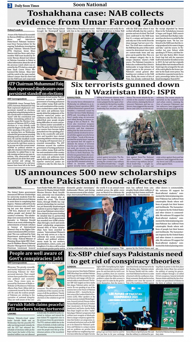 Daily Soon Times Page: 3 March 09, 2023 Today's ePaper Islamabad Edition << First << 3 >> Last >> Page 1Page 2Page 3Page 4Page 5Page 6Page 7Page 8 × Daily Soon Times 12345678 Full PDF 12345678 3