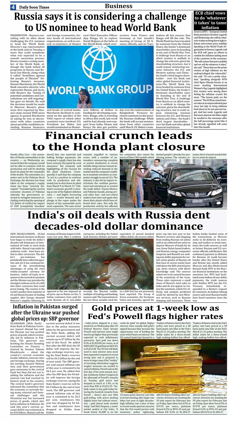 Daily Soon Times Page: 4 March 09, 2023 Today's ePaper Islamabad Edition << First << 4 >> Last >> Page 1Page 2Page 3Page 4Page 5Page 6Page 7Page 8 × Daily Soon Times 12345678 Full PDF 12345678 4
