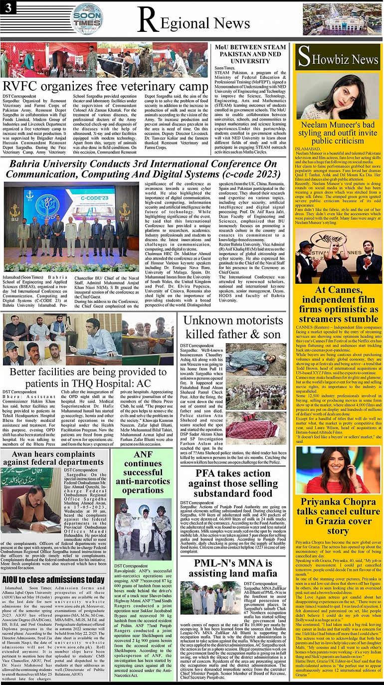 Daily Soon Times Page: 3 May 18, 2023 Daily Soon Times Today's ePaper << First << 3 >> Last >> Page 1Page 2Page 3Page 4 × Daily Soon Times 1234 Full PDF 1234 3