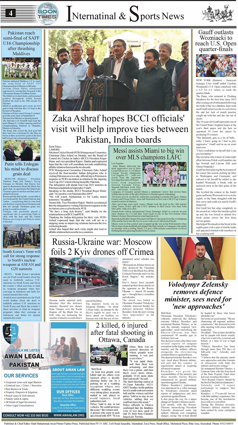 Daily Soon Times Page: 4 September 05, 2023 Daily Soon Times Today's ePaper Leading English Newspaper from Islamabad, Sargodha, Karachi << First << 4 >> Last >> Page 1Page 2Page 3Page 4 × Daily Soon Times 1234 1234 4