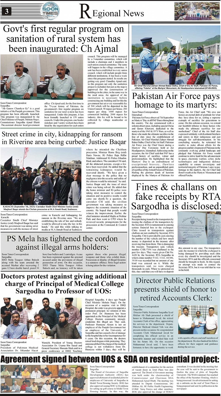 Daily Soon Times Page: 3 September 08, 2023 Daily Soon Times Today's ePaper Leading English Newspaper from Islamabad, Sargodha, Karachi << First << 3 >> Last >> Page 1Page 2Page 3Page 4 × Daily Soon Times 1234 1234 3