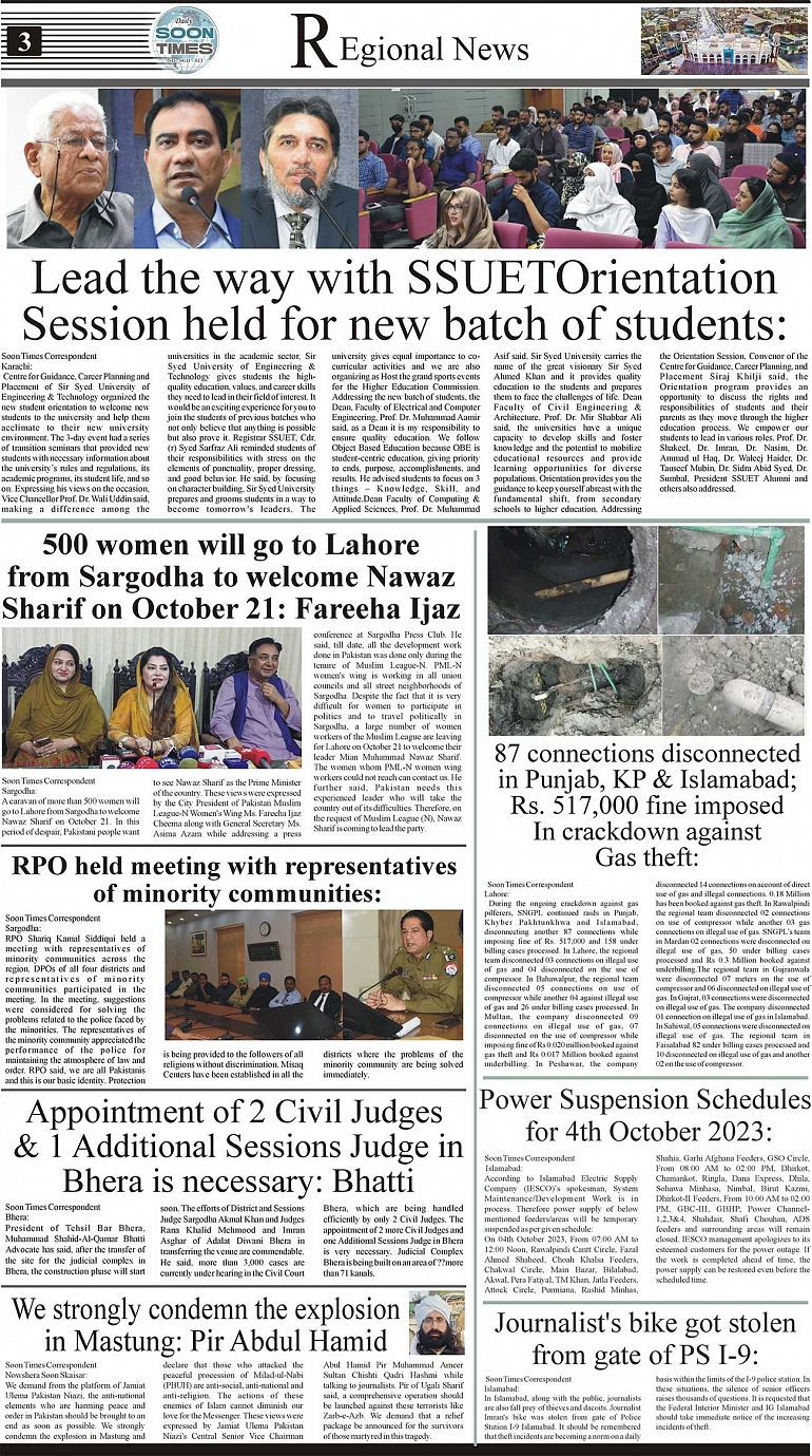 Daily Soon Times Page: 3 October 04, 2023 Daily Soon Times Today's ePaper Leading English Newspaper from Islamabad, Sargodha, Karachi << First << 3 >> Last >> Page 1Page 2Page 3Page 4 × Daily Soon Times 1234 1234 3
