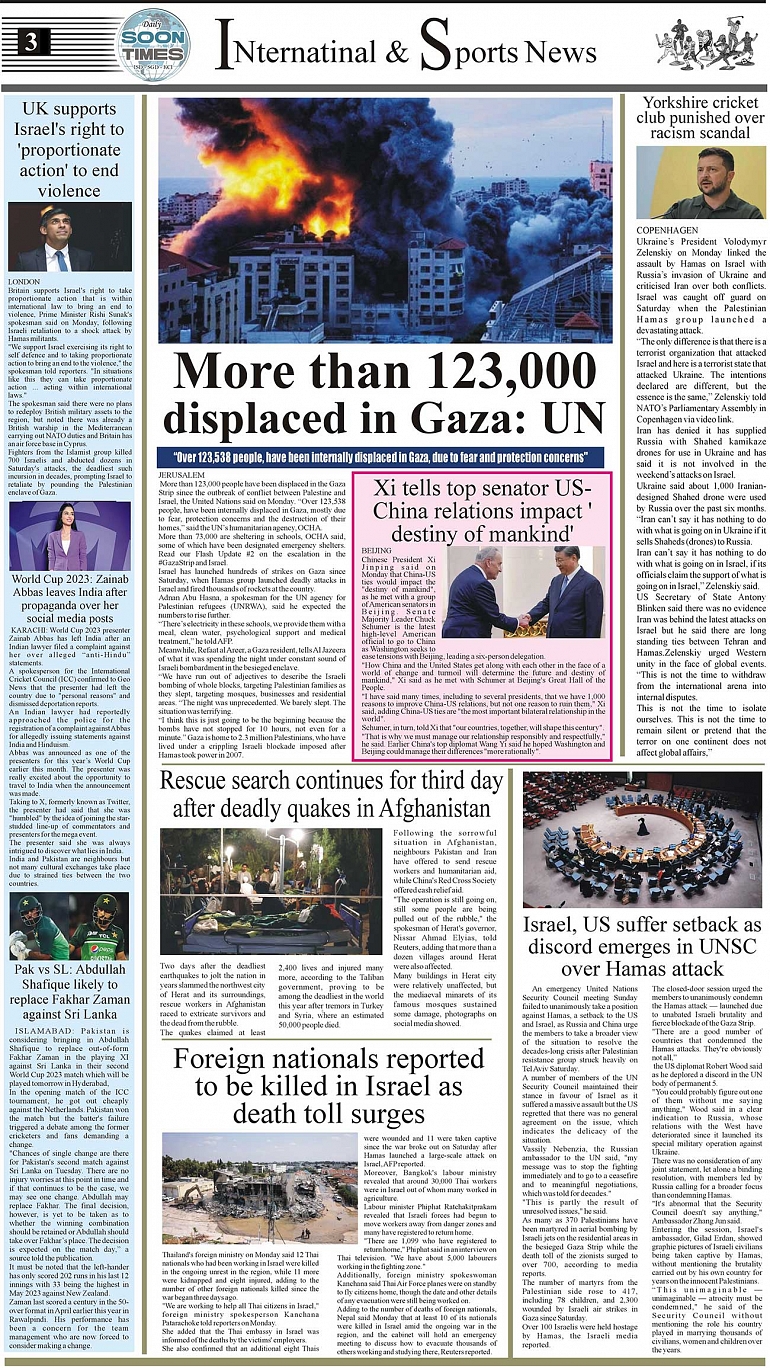 Daily Soon Times Page: 3 October 10, 2023 Daily Soon Times Today's ePaper Leading English Newspaper from Islamabad, Sargodha, Karachi << First << 3 >> Last >> Page 1Page 2Page 3Page 4 × Daily Soon Times 1k23k4 1k23k4 3k