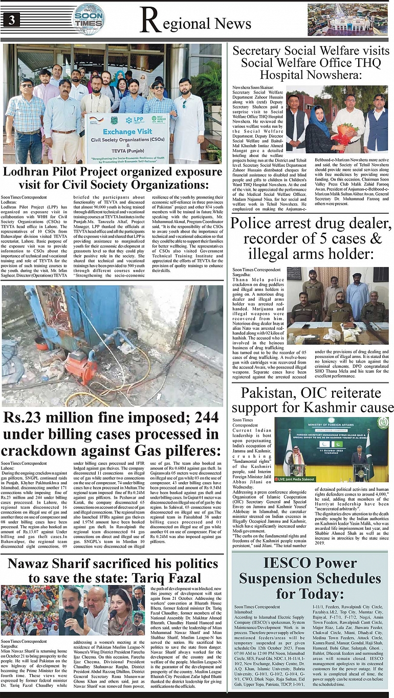 Daily Soon Times Page: 3 October 12, 2023 Daily Soon Times Today's ePaper Leading English Newspaper from Islamabad, Sargodha, Karachi << First << 3 >> Last >> Page 1Page 2Page 3Page 4 × Daily Soon Times 1234 1234 3