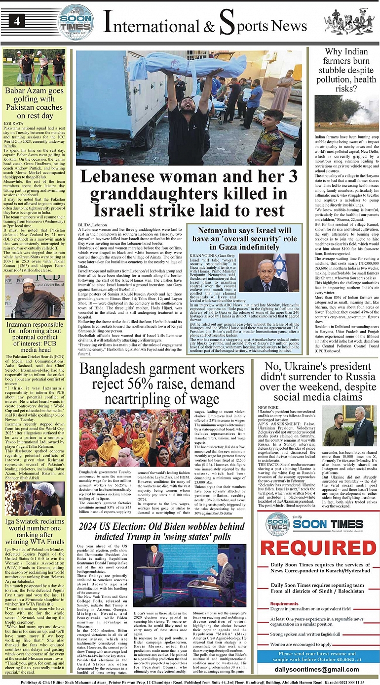 Daily Soon Times Page: 4 November 08, 2023 Daily Soon Times Today's ePaper Leading English Newspaper from Islamabad, Sargodha, Karachi << First << 4 >> Last >> Page 1Page 2Page 3Page 4 × Daily Soon Times 1k234k 1k234k 4k