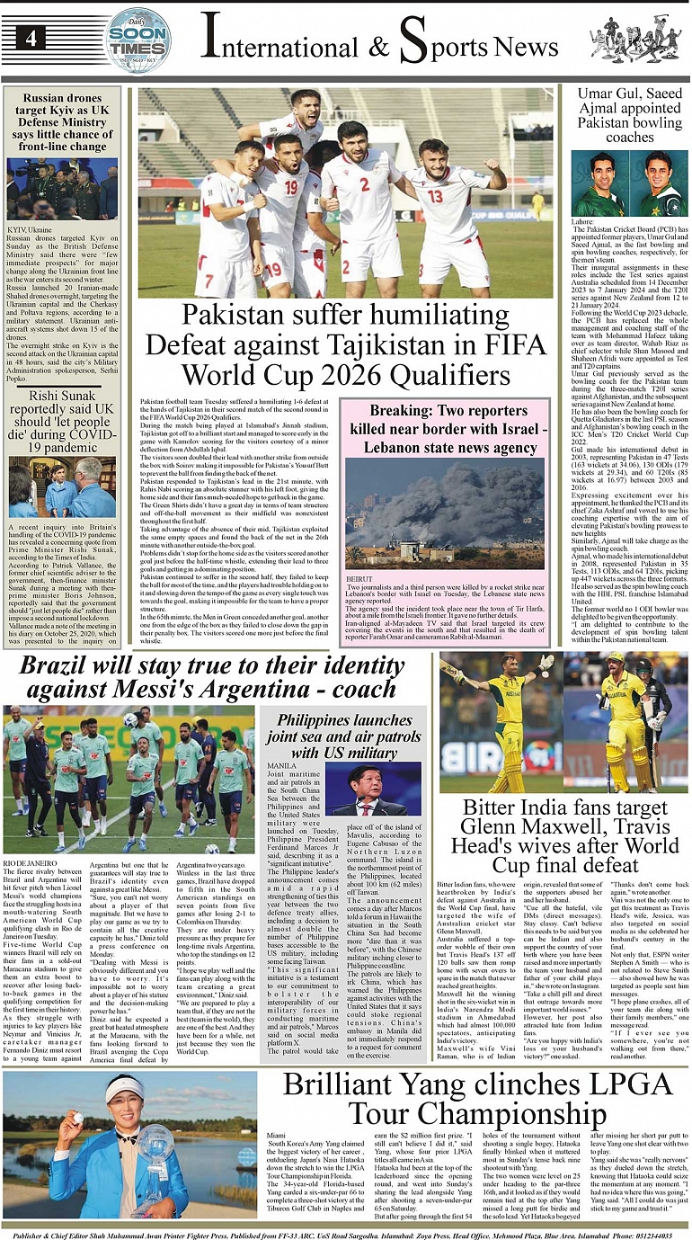 Daily Soon Times Page: 4 November 22, 2023 Daily Soon Times Today's ePaper Leading English Newspaper from Islamabad, Sargodha, Karachi << First << 4 >> Last >> Page 1Page 2Page 3Page 4 × Daily Soon Times 1234 1234 4