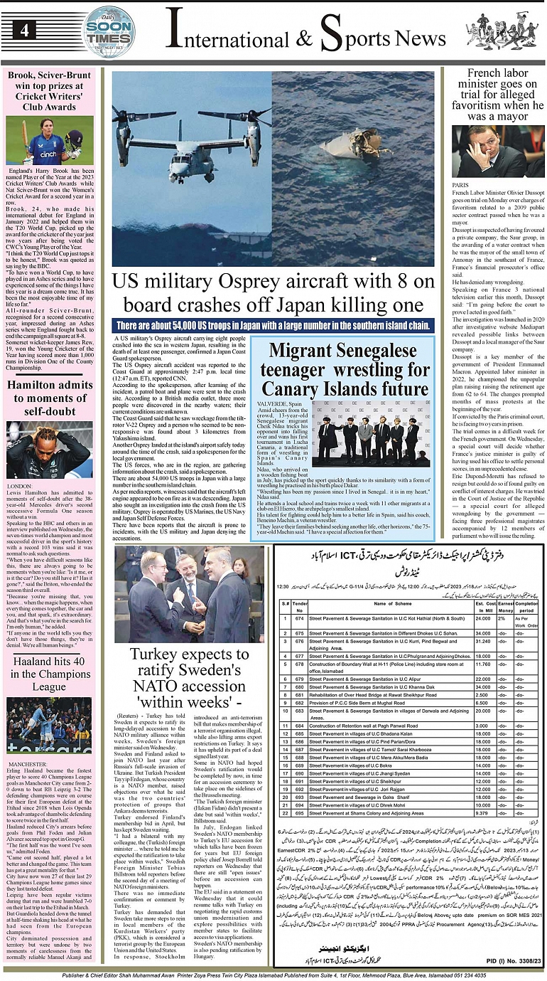 Daily Soon Times Page: 4 November 30, 2023 Daily Soon Times Today's ePaper Leading English Newspaper from Islamabad, Sargodha, Karachi << First << 4 >> Last >> Page 1Page 2Page 3Page 4 × Daily Soon Times 1234 1234 4