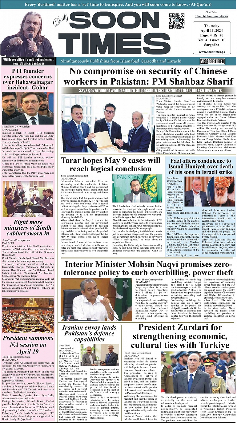 Daily Soon Times April 18, 2024 Daily Soon Times Today’s ePaper Leading English Newspaper from Islamabad, Sargodha, Karachi << First << 1 >> Last >> Page 1Page 2Page 3Page 4 × Daily Soon Times 1234 1234 1