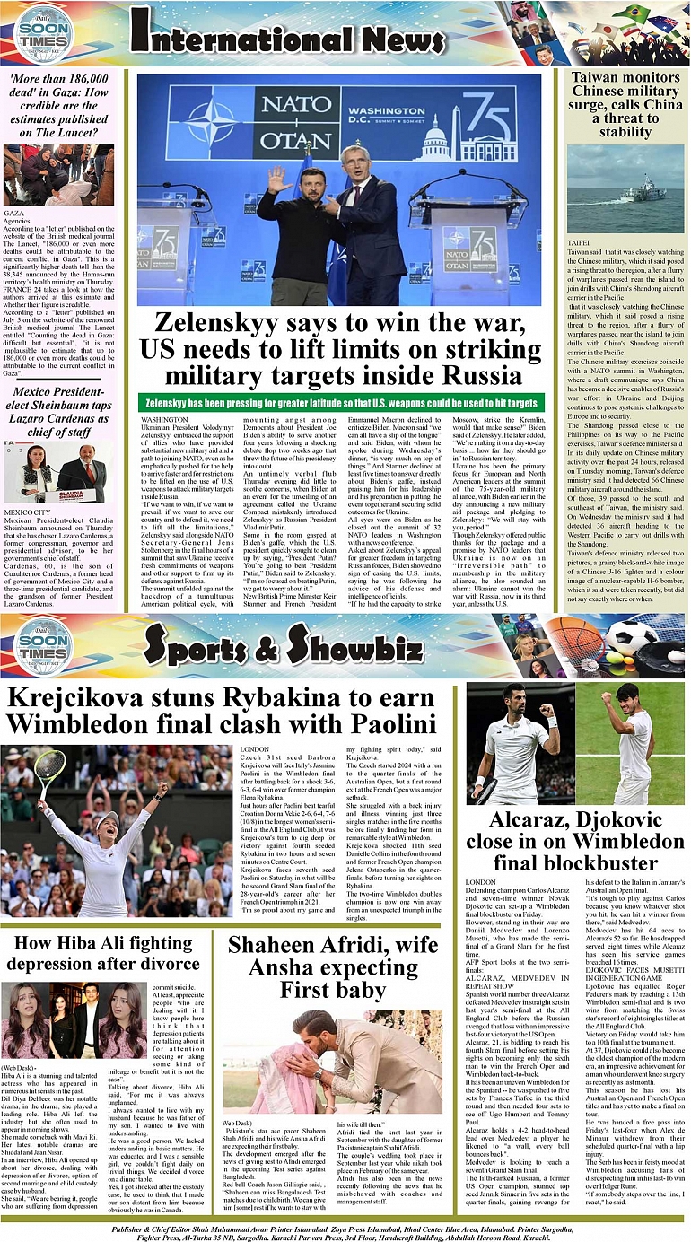 Daily Soon Times Page: 4 July 13, 2024 Daily Soon Times Today’s ePaper Leading English National Newspaper from Islamabad, Sargodha, Karachi << First << 4 >> Last >> Page 1Page 2Page 3Page 4 × Daily Soon Times 1234 1234 4