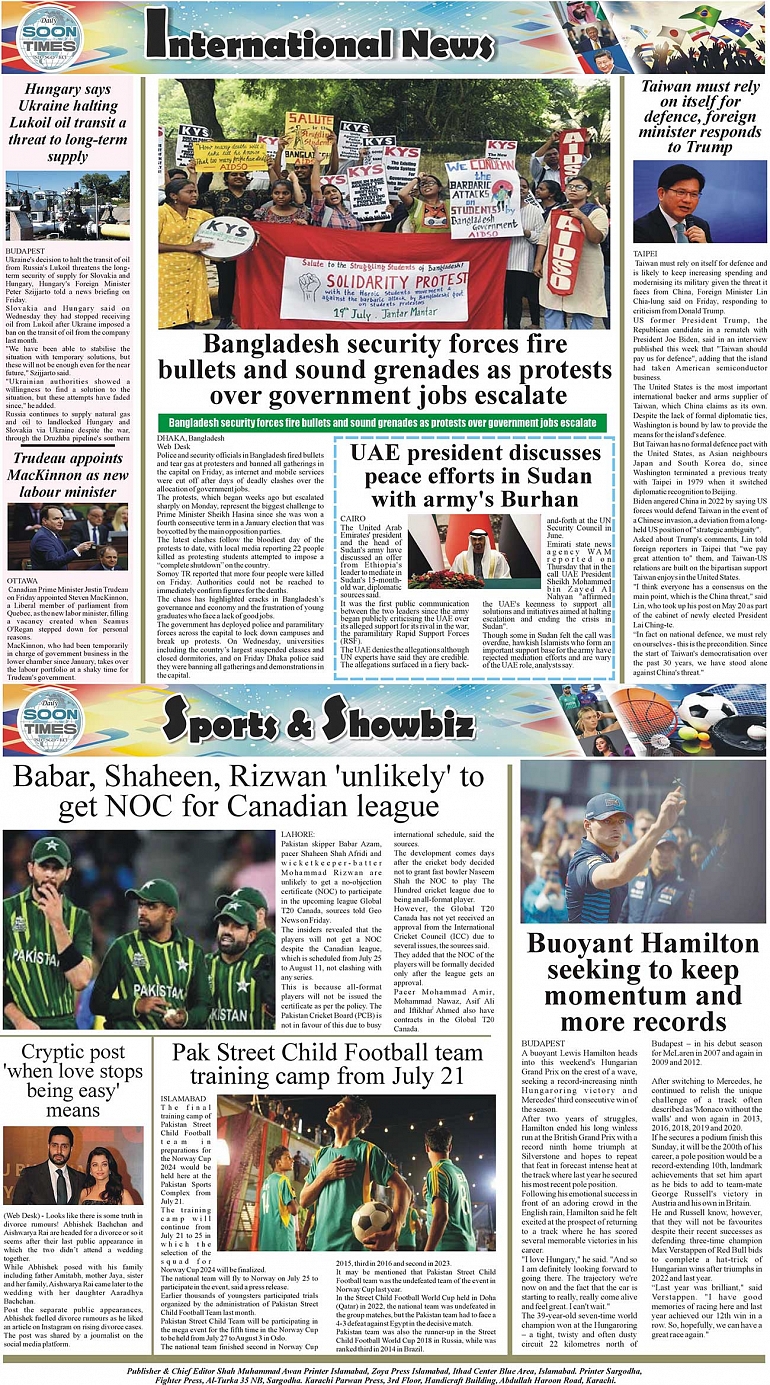 Daily Soon Times Page: 4 July 20, 2024 Daily Soon Times Today’s ePaper Leading English National Newspaper from Islamabad, Sargodha, Karachi << First << 4 >> Last >> Page 1Page 2Page 3Page 4 × Daily Soon Times 1234 1234 4