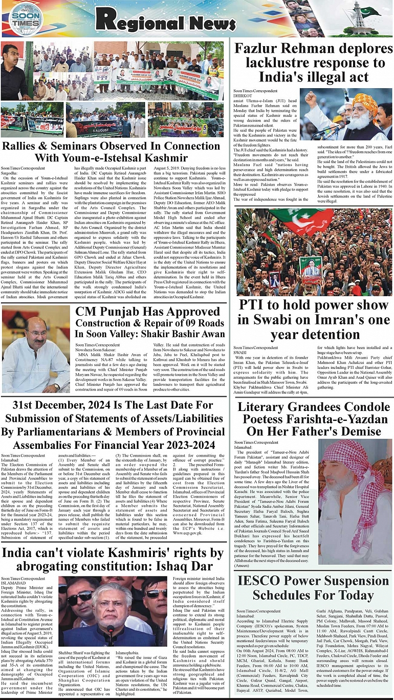 Daily Soon Times Page: 3 August 06, 2024 Daily Soon Times Today’s ePaper Leading English National Newspaper from Islamabad, Sargodha, Karachi << First << 3 >> Last >> Page 1Page 2Page 3Page 4 × Daily Soon Times 1234 1234 3