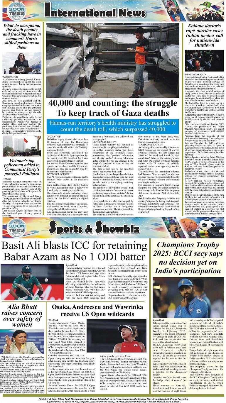 Daily Soon Times Page: 4 August 17, 2024 Daily soon times today's ePaper leading English national newspaper from Islamabad, Sargodha, Karachi, Pakistan << First << 4 >> Last >> Page 1Page 2Page 3Page 4 × Daily Soon Times 1000294110100029411210002941191000294115 1000294110100029411210002941191000294115 1000294115
