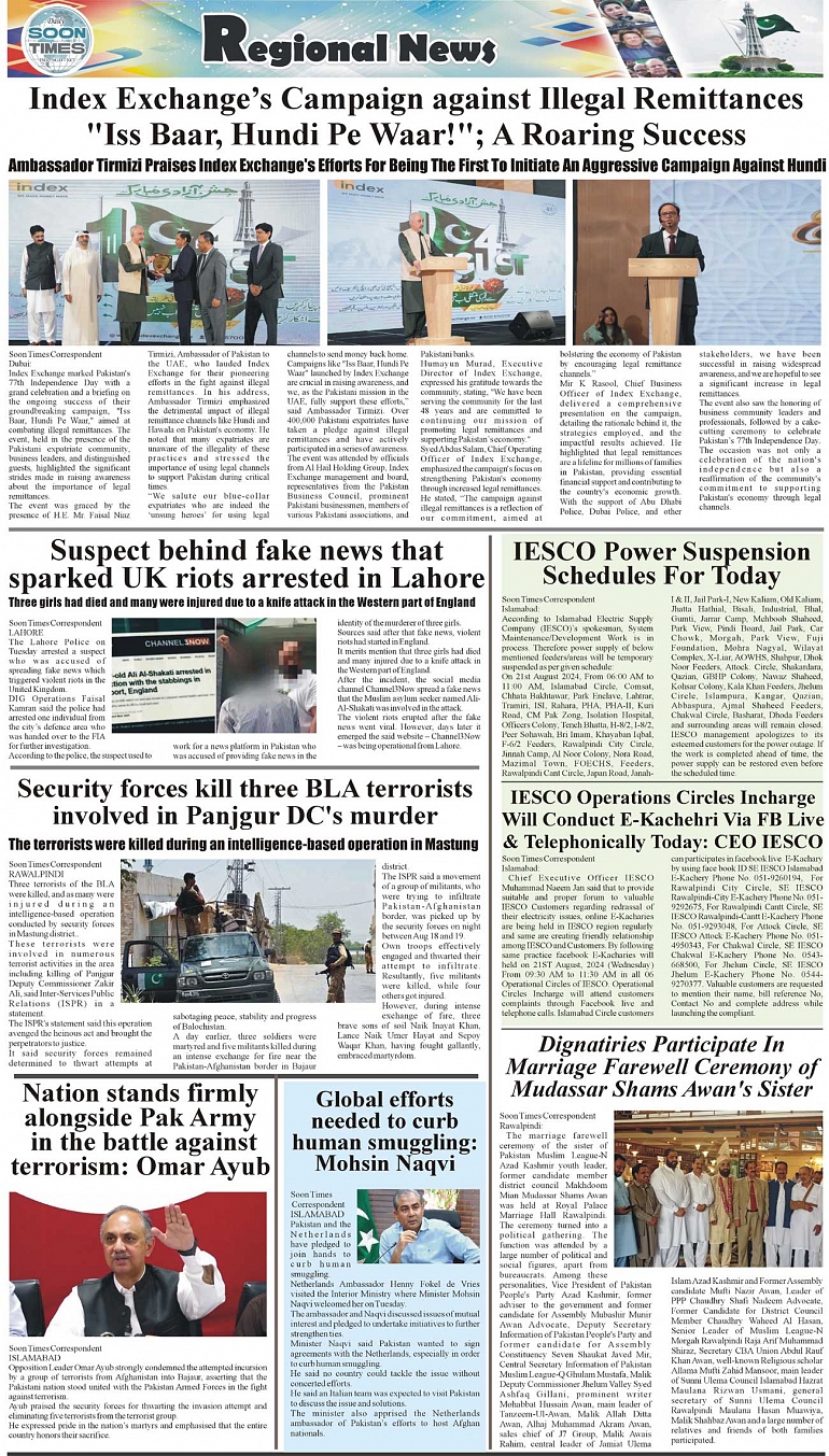 Daily Soon Times Page: 3 August 21, 2024 Daily soon times today's ePaper leading English national newspaper from Islamabad, Sargodha, Karachi, Pakistan << First << 3 >> Last >> Page 1Page 2Page 3Page 4 × Daily Soon Times 1000302004100030200710003020051000302009 1000302004100030200710003020051000302009 1000302005