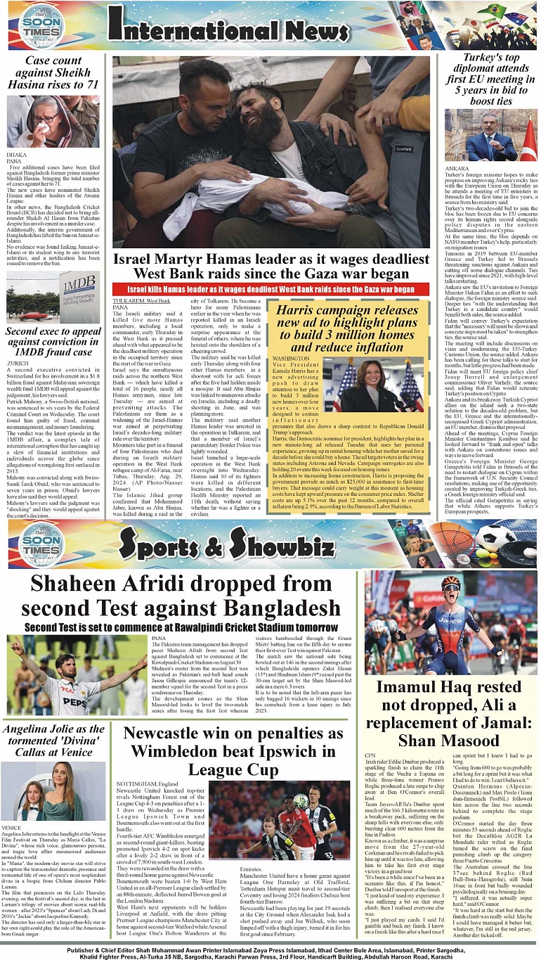 Daily Soon Times Page: 4 August 30, 2024 Daily soon times today's ePaper leading English national newspaper from Islamabad, Sargodha, Karachi, Pakistan << First << 4 >> Last >> Page 1Page 2Page 3Page 4 × Daily Soon Times 1k23k4 1k23k4 4