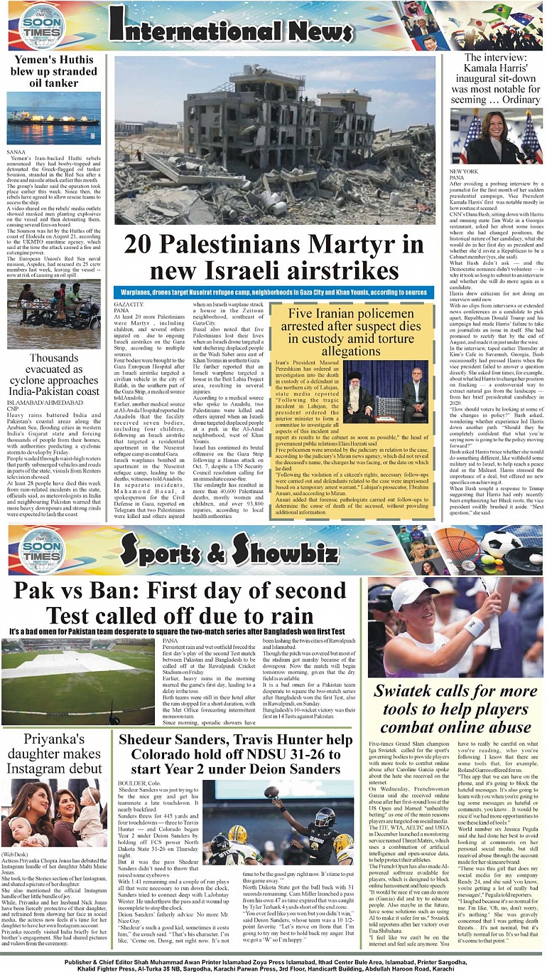 Daily Soon Times Page: 4 August 31, 2024 Daily soon times today's ePaper leading English national newspaper from Islamabad, Sargodha, Karachi, Pakistan << First << 4 >> Last >> Page 1Page 2Page 3Page 4 × Daily Soon Times 1k23k4 1k23k4 4