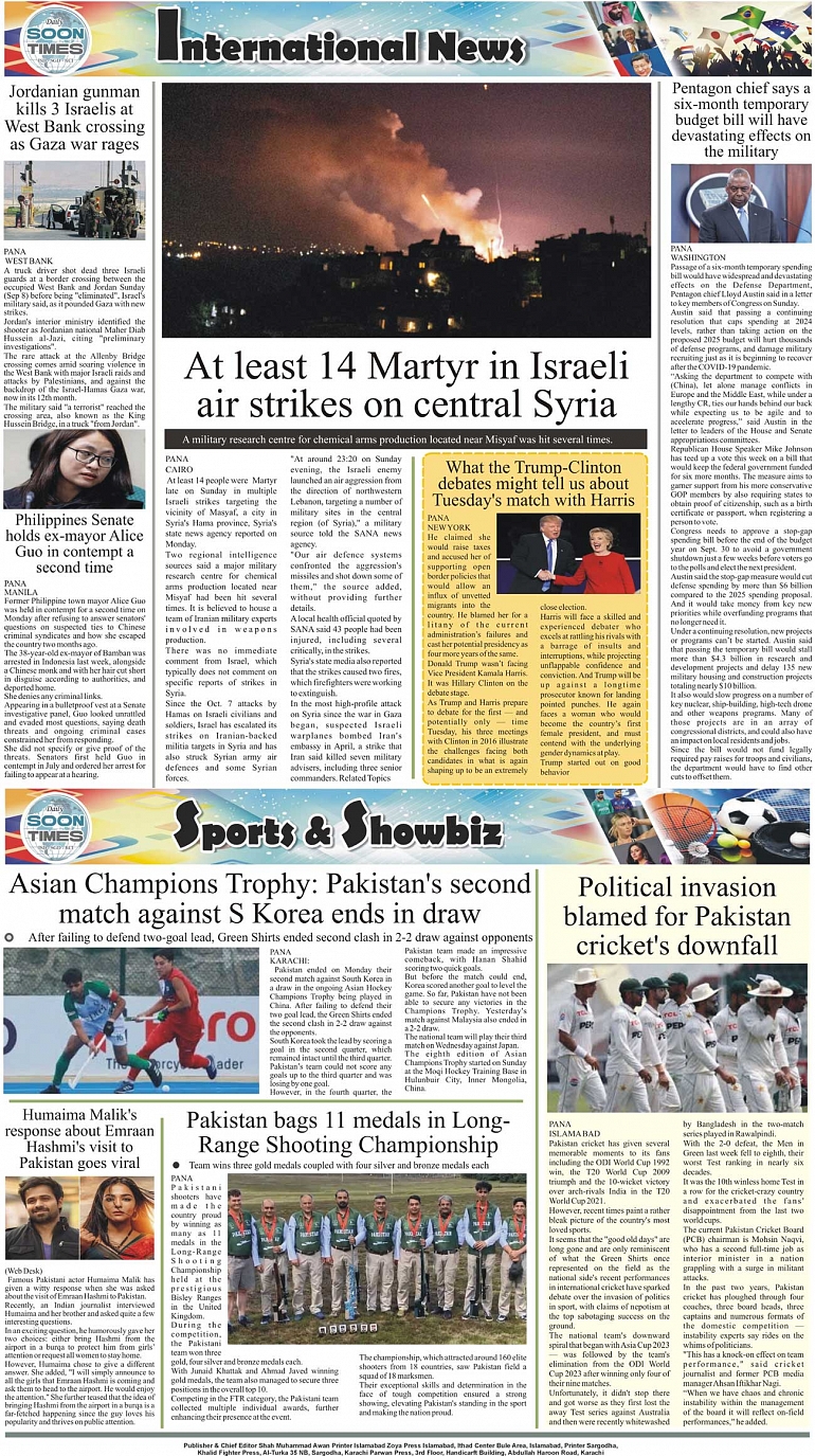 Daily Soon Times Page: 4 September 10, 2024 Daily soon times today's ePaper leading English national newspaper from Islamabad, Sargodha, Karachi, Pakistan << First << 4 >> Last >> Page 1Page 2Page 3Page 4 × Daily Soon Times 1k23k4 1k23k4 4