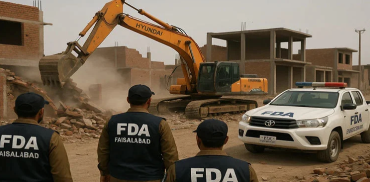 According to an FDA spokesperson, the enforcement operation was conducted under the supervision of Director Town Planning Asma Mohsin and Deputy Director Town Planning Faran Siddiqui. During routine inspections, officials identified that the Grand City project in Chak No. 59-JB was operating illegally.